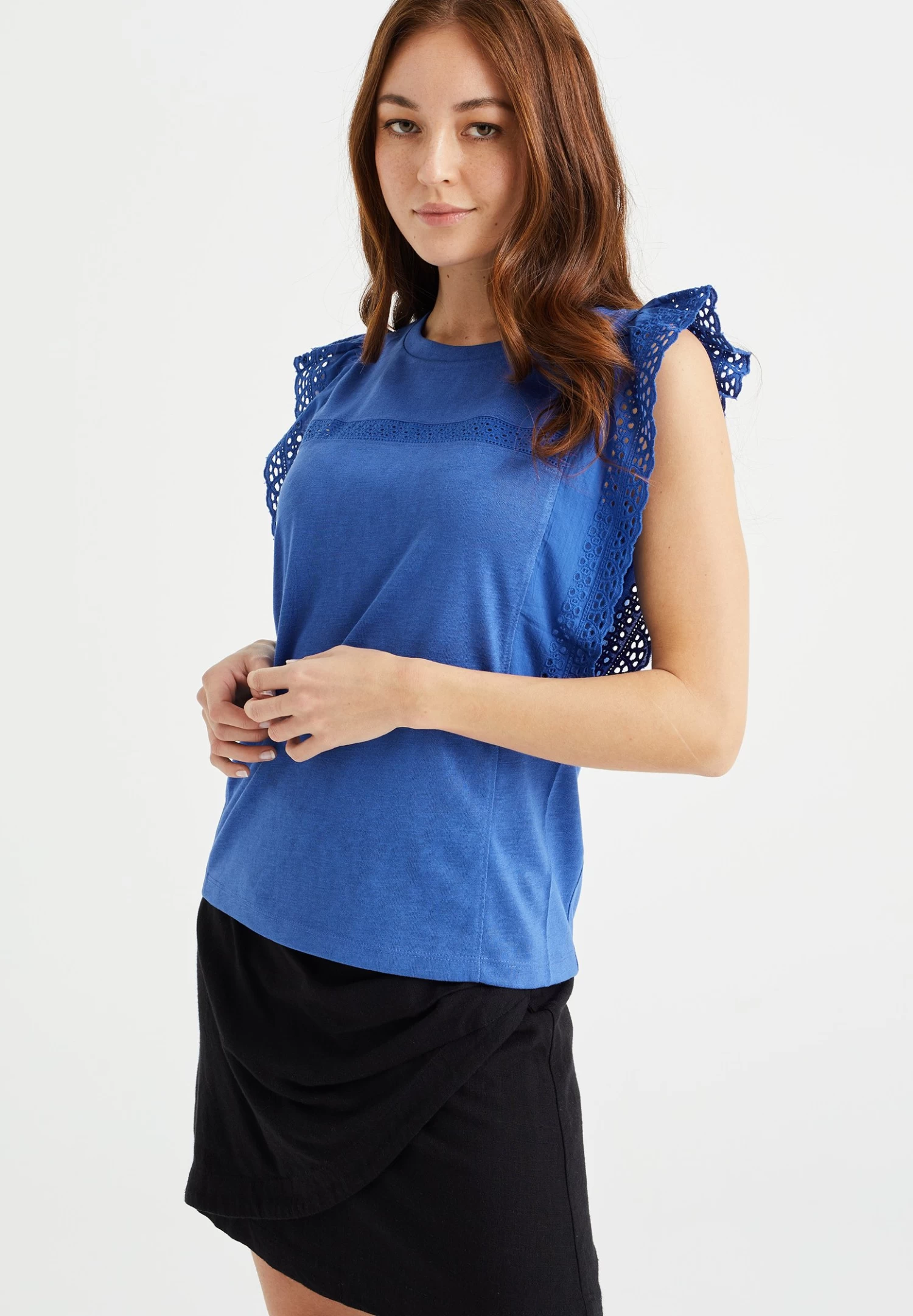 WE FASHION Met Broderie Anglaise – T-Shirt Print – Blue
