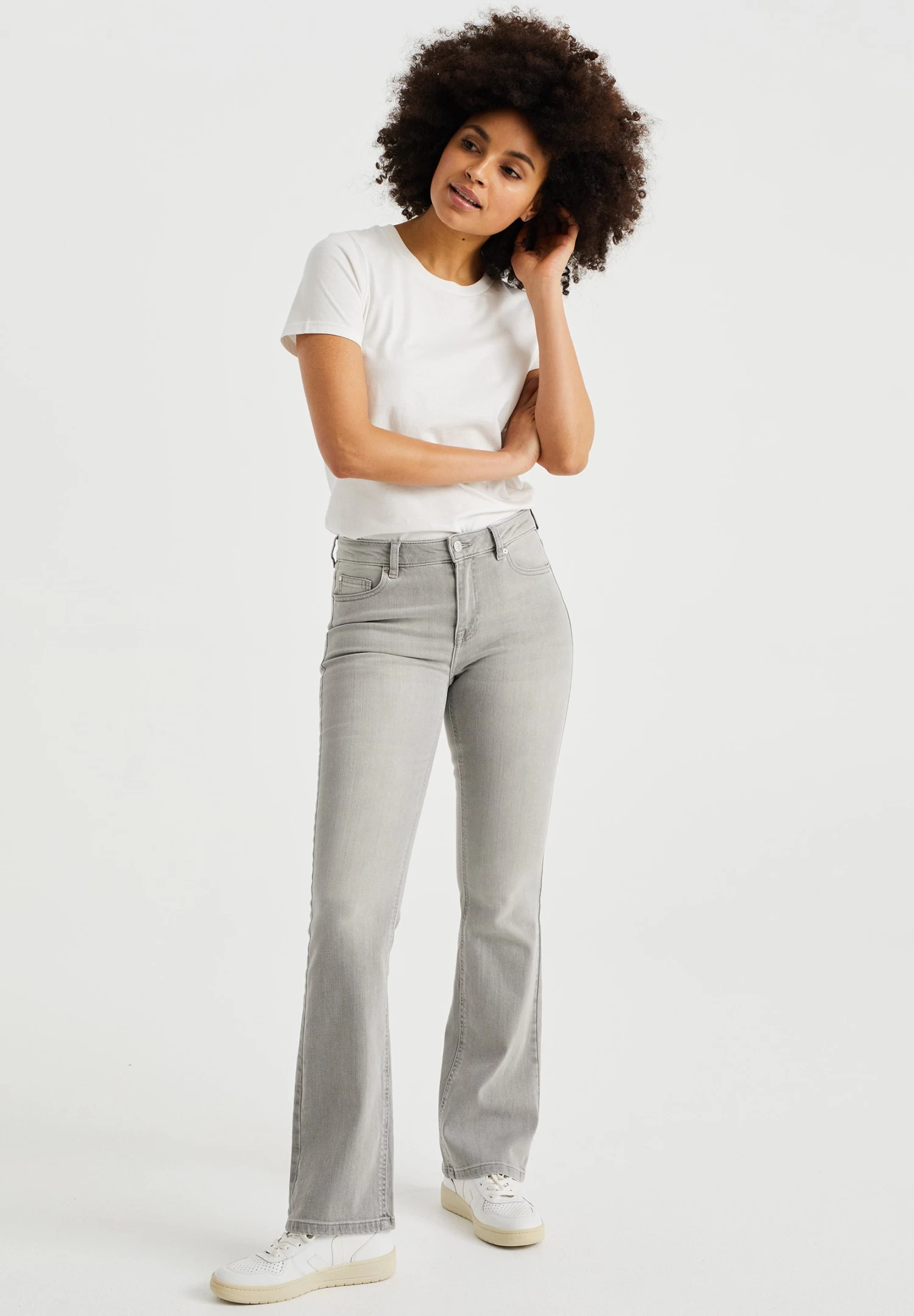 WE FASHION Mid Rise Met Comfort-Stretch – Bootcut Jeans – Grey